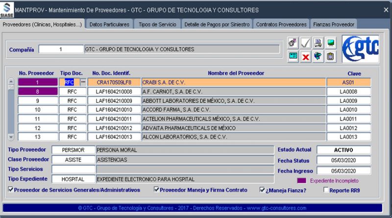 - Registro de datos específicos para Proveedores Administrativos y/o de Servicios Generales, así como los servicios que prestan a la aseguradora.